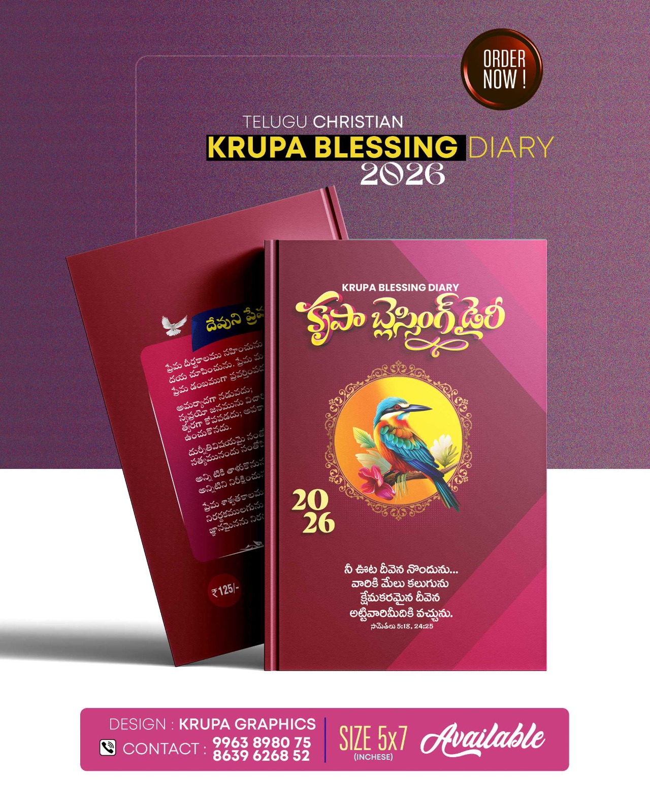 Krupa Graphics, secunderabad, design and printing the different models of Bible Note Books. Here Printing diary size is 5*7. Name of the your church and ministry of church printing in front of diary. Here provides different models. you can see more models.
